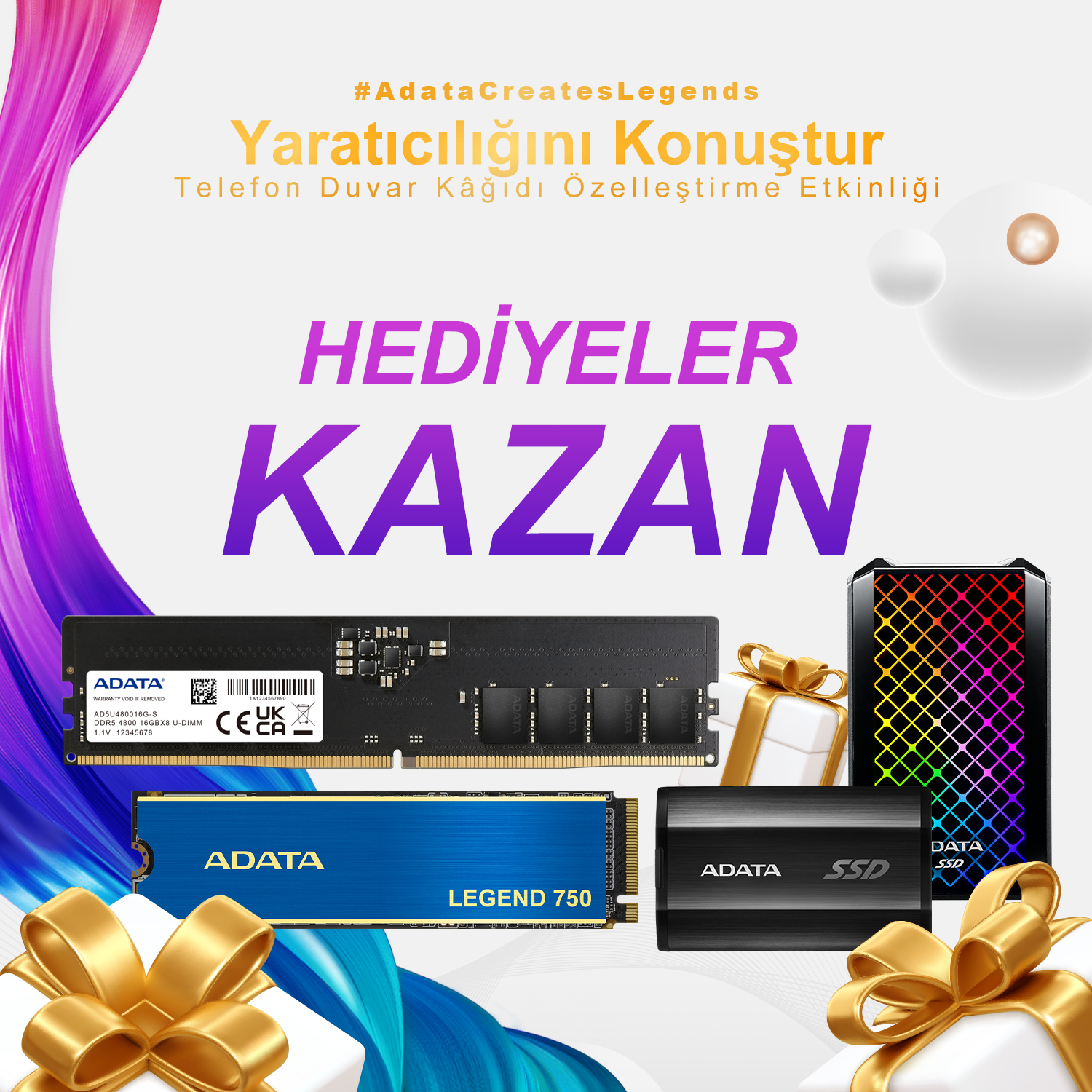ADATA yeni nesil ürünlerinin çıkışını kutlamak için ödüllü bir yarışma düzenliyor. Bugünden itibaren 10 Aralık 2021’e kadar sürecek yarışma kapsamında kullanıcılar hazırladıkları duvar kâğıtları ile 2000 dolar değerindeki ödülleri kazanma şansını yakalayacaklar. Kazanmak için katılımcıların kampanya sitesindeki duvar kâğıtlarını indirip bunlar üzerinde kendi tasarımlarını yaparak, @adata_global ve indirdikleri orijinal duvar kâğıdının yaratıcısını etiketleyip #AdataCreatesLegends etiketiyle Instagram üzerinden paylaşmaları gerekiyor.