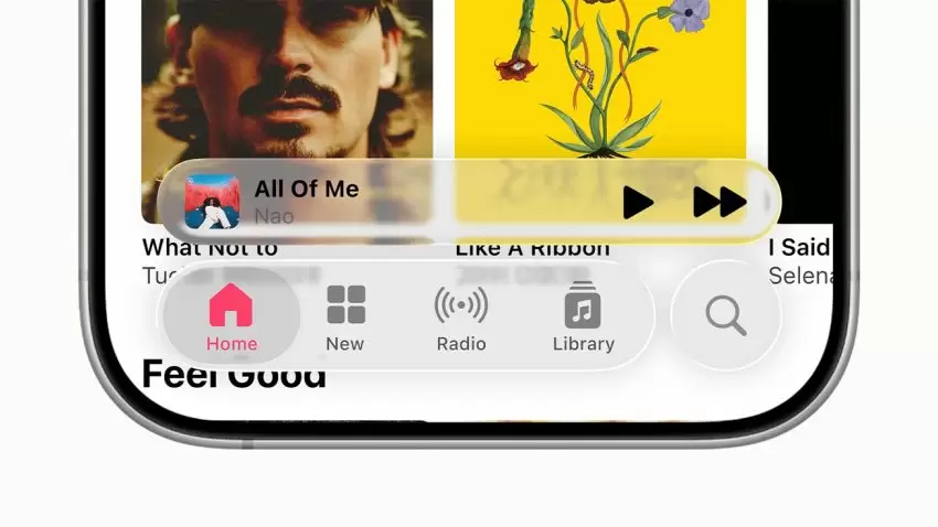 Apple WWDC25 Liquid Glass Apple Music dynamic tab bars